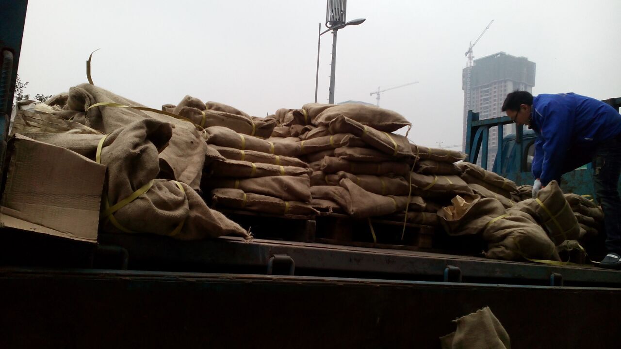 由于倉庫條件有限,不能使用叉車,伙伴們徒手將一袋袋沉重的鏈條抱進倉庫。