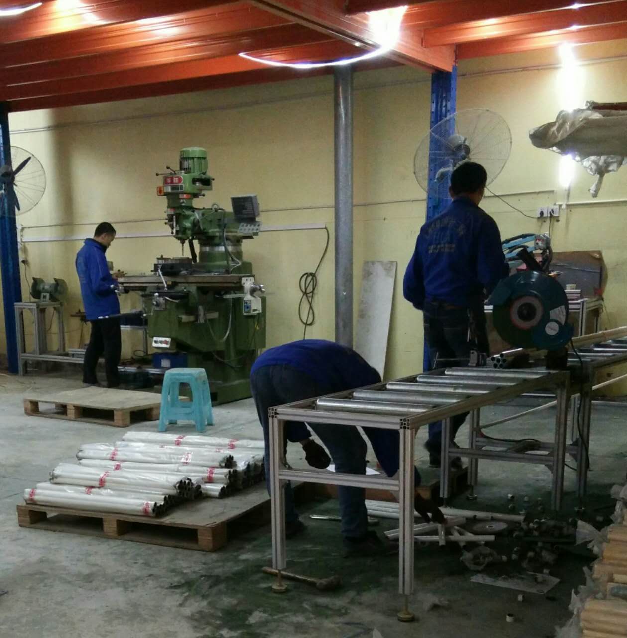 匯利興人正在切割精益管  匯利興人認(rèn)真的對精益管或鋁型材進(jìn)行鉆銑、切割 匯利興精益管小知識:材料(外部塑料層+中間鐵管+內(nèi)部防銹涂層)、外徑(27.8mm-27mm)、內(nèi)徑(19.5mm-24mm)、鋼管壁厚(0.8-1.5mm)、顏色(米黃、米白、純白、黑色防靜電、藍(lán)色)。