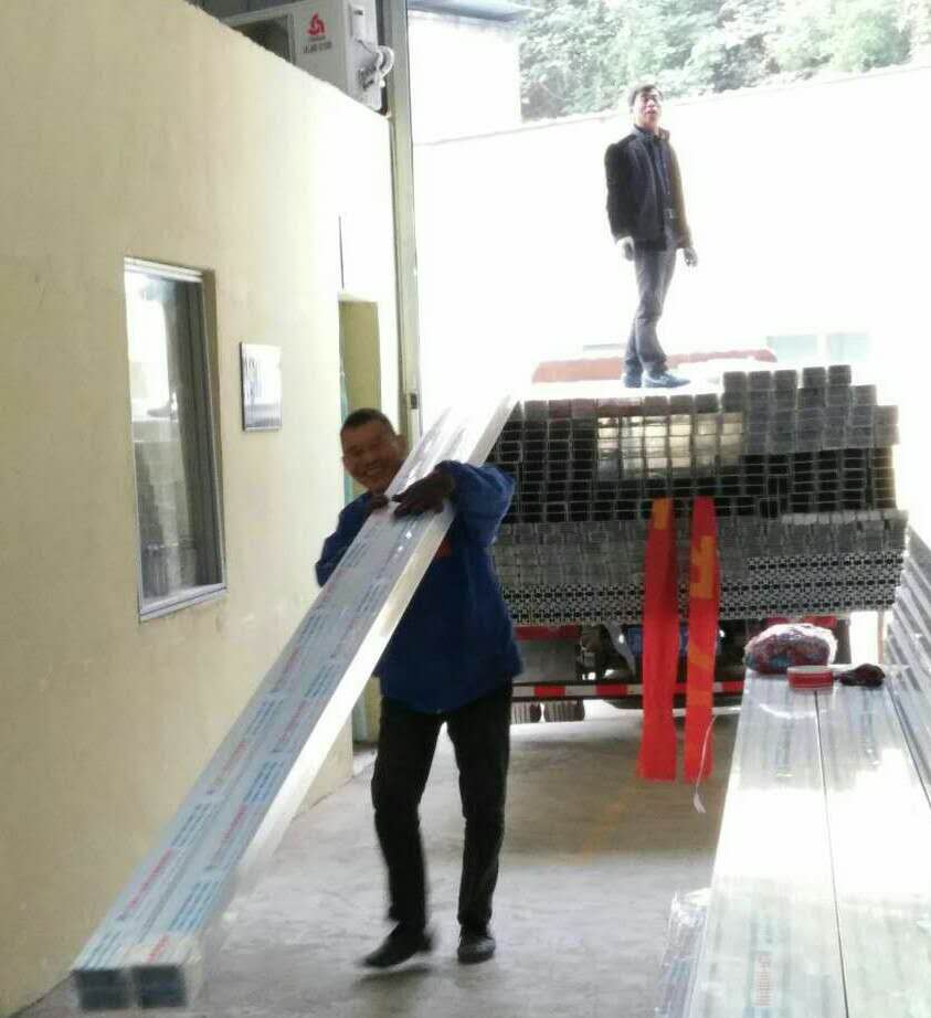 匯利興戰(zhàn)士面帶笑容搬卸鋁型材,匯利興獨有的匠心精神