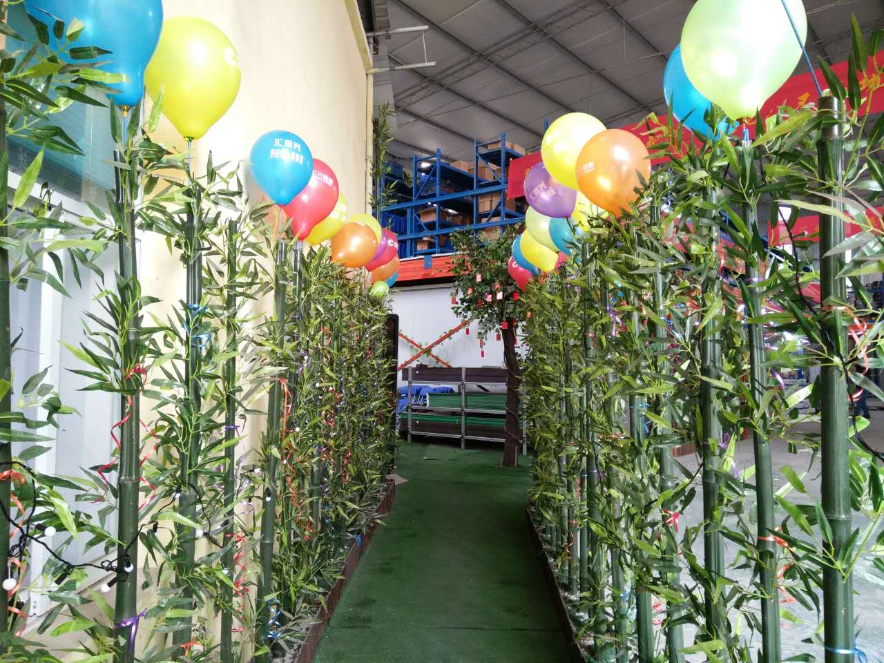 張燈結(jié)彩,彩旗飄飄-好山好水好地方好彩頭 陽光普灑在匯利興墻面上紅彤彤的燈籠兒掛立兩旁彰顯著匯利興紅火的前方,進(jìn)而也突顯著匯利興企業(yè)文化與團(tuán)隊精神同時也在溫暖著匯利興人的心 精神抖擻的匯利興人在認(rèn)真的工作 綠草青竹有著無顏六色的彩帶與氣球兒的點(diǎn)綴成為了一顆璀璨耀眼的明珠,一個“世外竹源”。