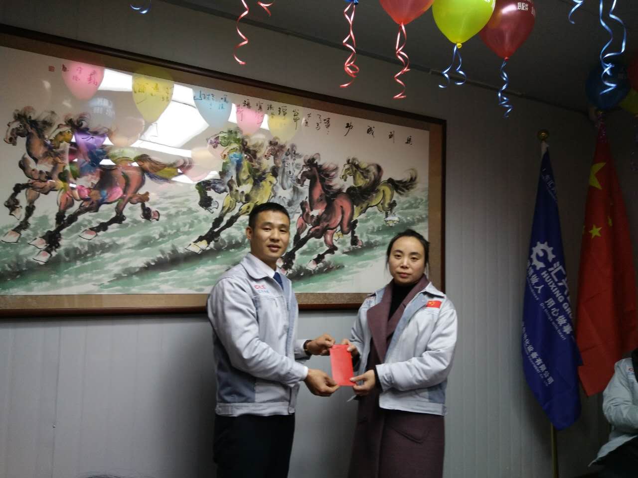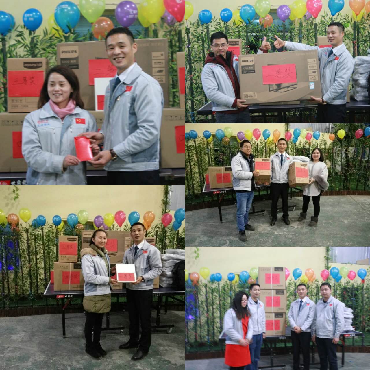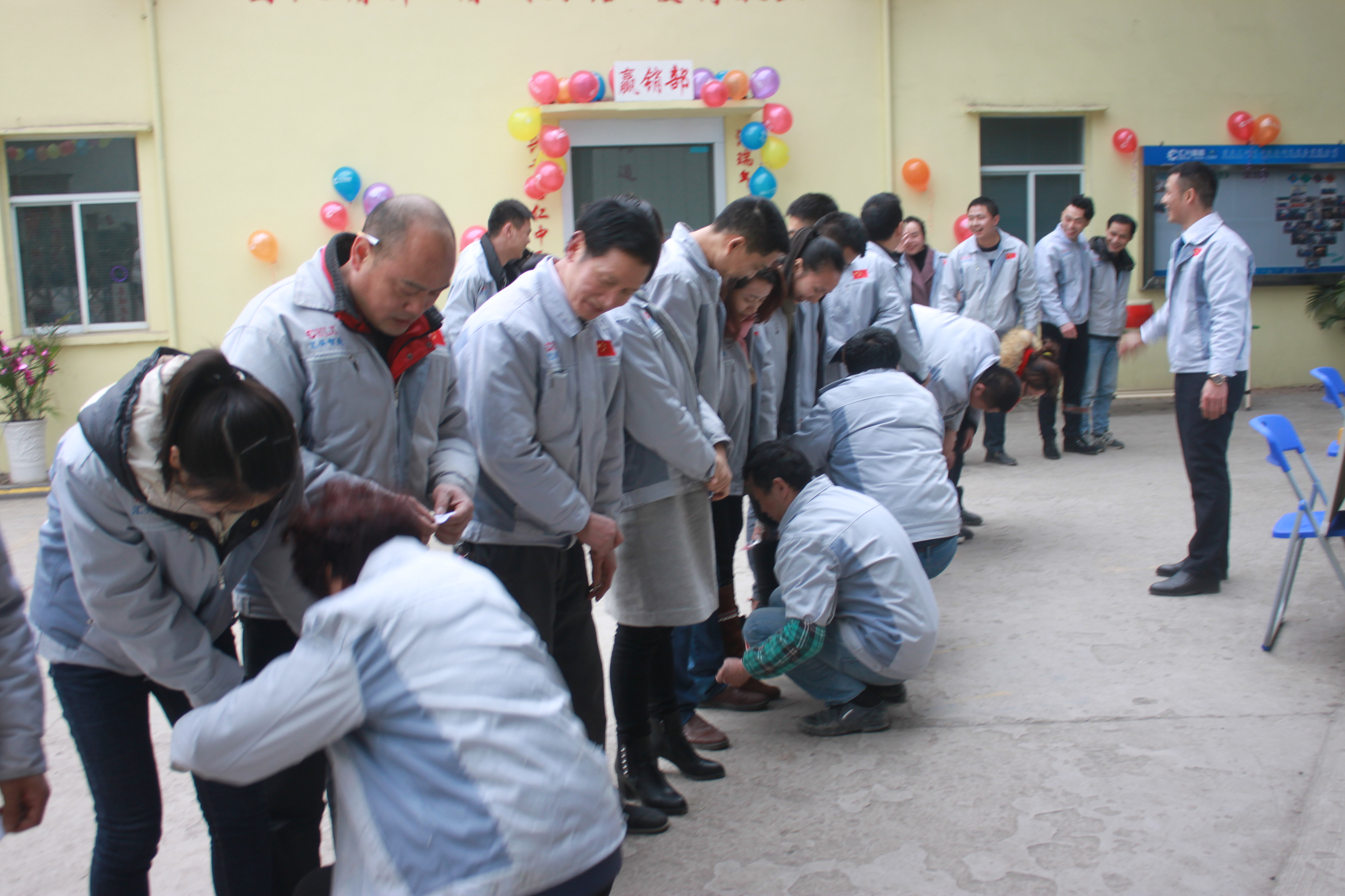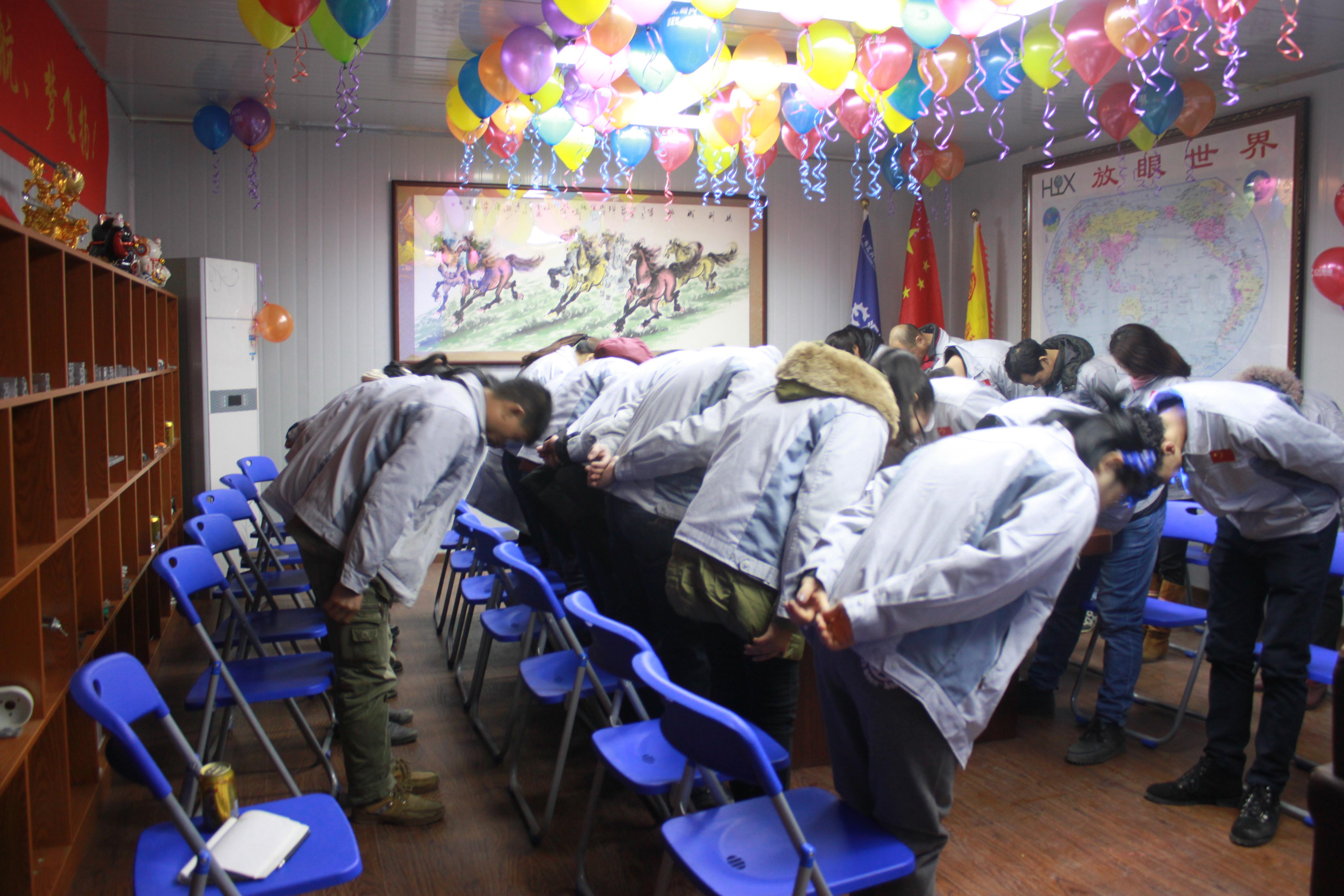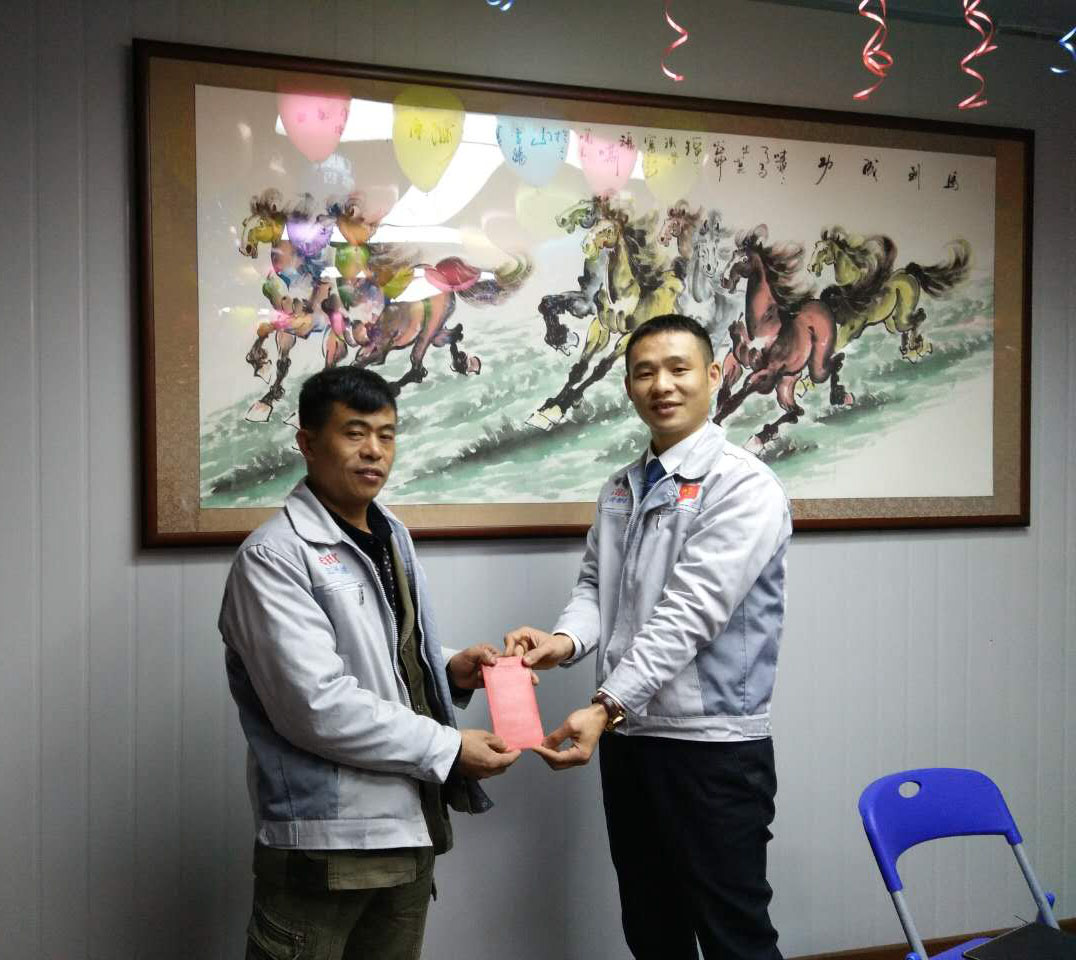 (眾人一條心)游戲準(zhǔn)備中,裁判們?yōu)檫x手們系上同心交織的紐帶 匯利興女戰(zhàn)士敲擊士鼓,士氣比武器更重要 會(huì)議召開(kāi)前對(duì)企業(yè)三道(人道、孝道、商道)行三鞠躬 年度盛會(huì)由主持人劉園園上臺(tái)正式拉開(kāi)序幕,會(huì)議前我們一起回眸2016年工作縮影,回眸了與匯利興大家庭的交集。 會(huì)議上,胡總經(jīng)理表示:2017年新起點(diǎn)的一系列規(guī)章制度、員工薪酬福利制度、員工職位考核制度,回首了2016年匯利興的成長(zhǎng)與發(fā)展,3月14日公司搬址、傳祺戰(zhàn)車加入、倉(cāng)儲(chǔ)及系統(tǒng)完善,2017年展望與目標(biāo)。同時(shí)表示感謝大家在2016年中的包容與支持同時(shí)也相信大家在2017年能一起攜手完成我們的目標(biāo)及挑戰(zhàn)。此后各部門(mén)代表發(fā)言總結(jié)2016年展望及2017年每月業(yè)績(jī)目標(biāo)。 匯利興全體戰(zhàn)士一起回眸2016年與匯利興大家庭的交集 隨著年會(huì)的氣氛越來(lái)越濃厚,接下來(lái)由胡總經(jīng)理一一頒發(fā)獎(jiǎng)金及揭曉年會(huì)大獎(jiǎng)獲者。獎(jiǎng)金頒發(fā):最佳付出獎(jiǎng)、最佳責(zé)任獎(jiǎng)分別是劉元平與石樂(lè)歡戰(zhàn)士,在此感謝兩位家人的奉獻(xiàn)與付出。 在你們愛(ài)家的同時(shí)匯利興這個(gè)家會(huì)更加愛(ài)你們。 胡偉路總經(jīng)理與“最佳責(zé)任獎(jiǎng)”榮獲者石樂(lè)歡同框合影 胡偉路總經(jīng)理與“最佳付出獎(jiǎng)”榮獲者劉元平同框合影 年會(huì)大獎(jiǎng)揭曉,胡總經(jīng)理一一揭曉大獎(jiǎng)獲者,此次大獎(jiǎng)由26個(gè)英文字母之一相繼而出,獲獎(jiǎng)組圖以下: 胡偉路總經(jīng)理與年度盛會(huì)大獎(jiǎng)獲得者合影圖(特等獎(jiǎng)、一等獎(jiǎng)、二等獎(jiǎng)、三等獎(jiǎng)、四等獎(jiǎng)) 年度盛典活動(dòng)逐漸接近尾聲,活動(dòng)以“畫(huà)鼻子”游戲拉開(kāi)帷幕。即使看不見(jiàn)光明,只要心中有信仰、信念那也將是一個(gè)通往前方的航燈。 匯利興大家庭年會(huì)團(tuán)圓飯圖貌 隨著年飯的結(jié)束,2016年盛會(huì)圓滿結(jié)束?;厥走^(guò)去,放眼未來(lái),2016年已逝去的,我們不再留戀,2017年的到來(lái)我們?nèi)ビ?;因?yàn)樵谛碌囊荒暧形覀兊哪繕?biāo)及夢(mèng)想我們要一同去創(chuàng)造去實(shí)現(xiàn)它,實(shí)現(xiàn)中國(guó)智能裝備全產(chǎn)業(yè)鏈集成智造標(biāo)桿,繼續(xù)引領(lǐng)行業(yè)的發(fā)展。同時(shí)在此感恩所有對(duì)匯利興關(guān)懷及支持過(guò)的您們,正是因?yàn)橛辛四鷤兊闹С植诺靡宰寘R利興茁壯成長(zhǎng),才能讓匯利興在行業(yè)道路上越走越穩(wěn)。感恩您們......