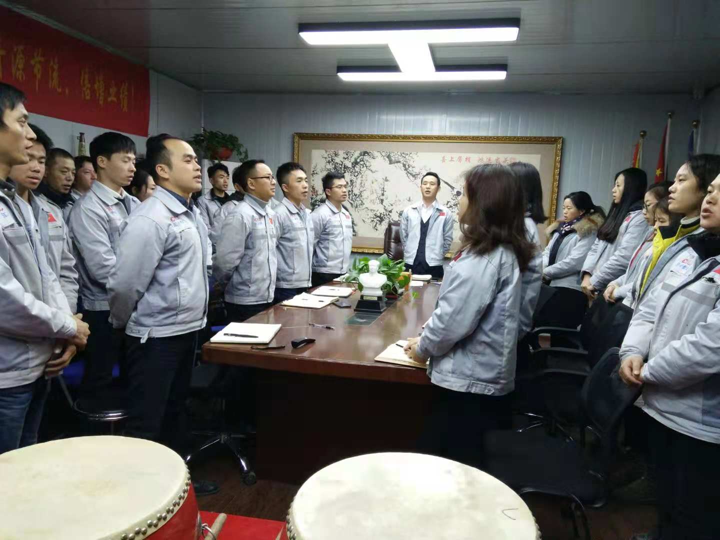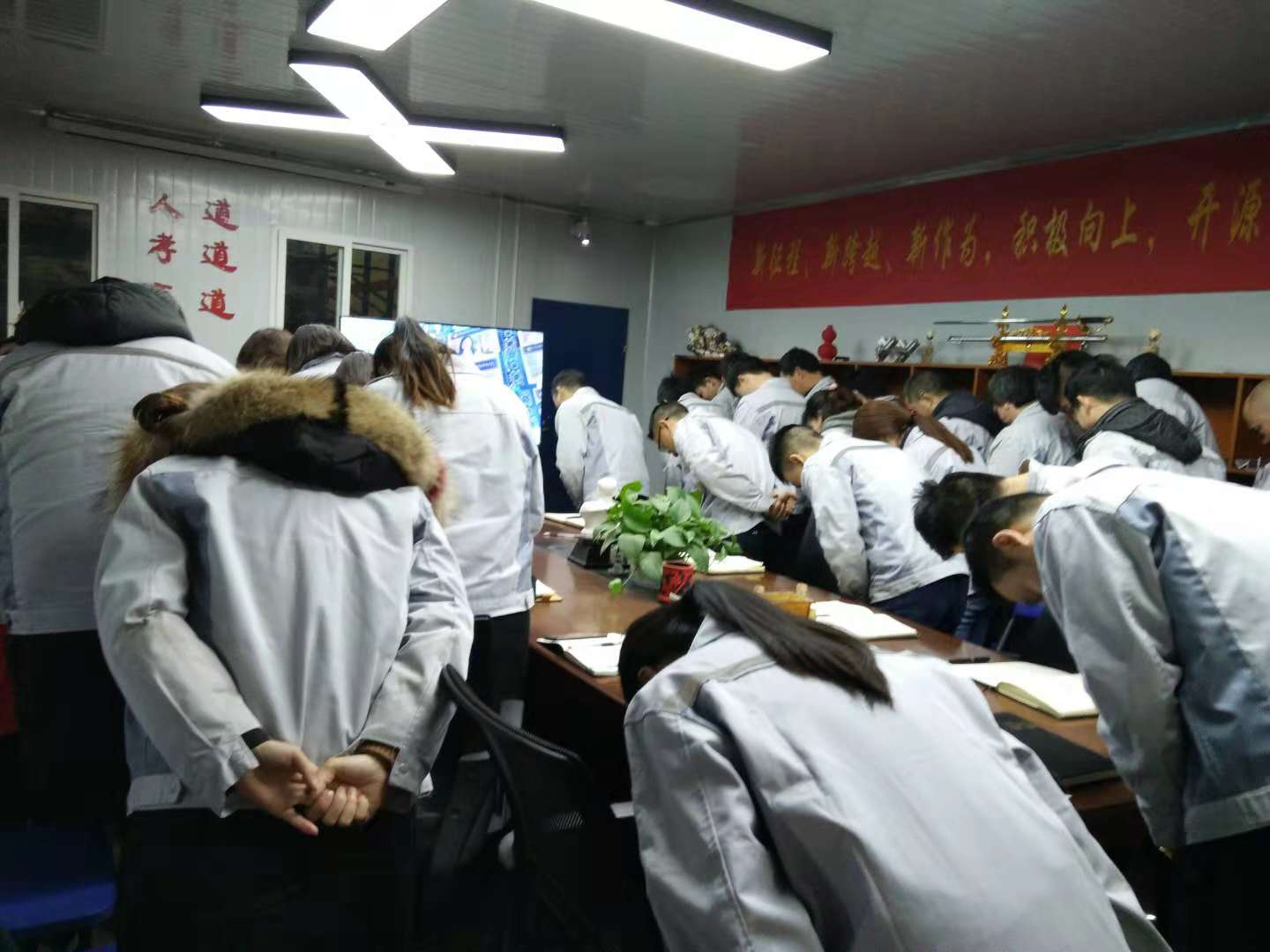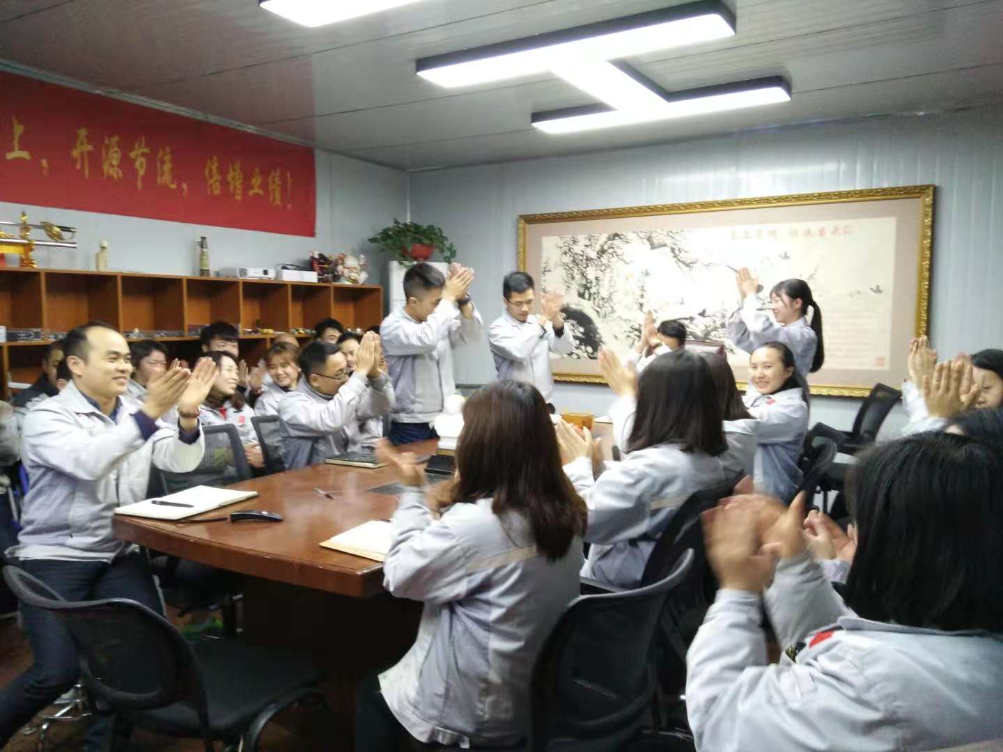 企業(yè)三道“孝道、商道、人道”行三鞠躬 擊士氣鼓,士氣比武器更重要 會議第一項議程:嘉獎環(huán)節(jié)-優(yōu)秀部門,優(yōu)秀員工評選。本月度優(yōu)秀部門“物控部”,月度之星“熊學(xué)斌”,他們用行動告訴我們什么是阿甘精神,什么是責(zé)任,在此祝賀他們同時也感謝他們的辛勤付出,感謝大家的付出,相信在僅有的2018年里,我們定會創(chuàng)造奇跡。 月度之星和優(yōu)秀部門獲得者合影圖 第二項議程:由我們的行政主管陳香草宣導(dǎo)倡議書,勉勵大家:“付出不一定有收獲,但不付出是一定沒有收獲”,其次感謝大家在工作崗位上的無私奉獻(xiàn),號召大家在2018的短短18天里面繼續(xù)努力,勁往一處使,心往一起靠,全力以赴,不忘初心、砥礪前行。同時宣導(dǎo)公司年會籌備事宜,并倡導(dǎo)大家踴躍參與,辦一個熱熱鬧鬧與眾不同的年會。 會議圖景一 第三項議程:胡偉路總經(jīng)理作會議總結(jié)及未來展望。會上,胡偉路總經(jīng)理提到“三心二力”,對自己的信心,跟進(jìn)客戶的耐心,拿下訂單的決心,對規(guī)矩的執(zhí)行力,團(tuán)隊協(xié)作的戰(zhàn)斗力;希望大家在最后的18天里以奉獻(xiàn)自身的力量,自身協(xié)作能力全力沖刺,完成好每一份訂單。在2018的最后一個月請各個部門主管做好總結(jié)與反思,用最大的力量助力公司,為我們的2018畫上一個完美的句號。 會議圖景二 最后,全體匯興人起立,整肅衣冠,眾志成城齊喊“為夢想沖刺,我是匯利興的一名忠誠戰(zhàn)士”,整個會場環(huán)繞著吶喊聲,現(xiàn)場激情澎湃、士氣高昂、振奮人心。