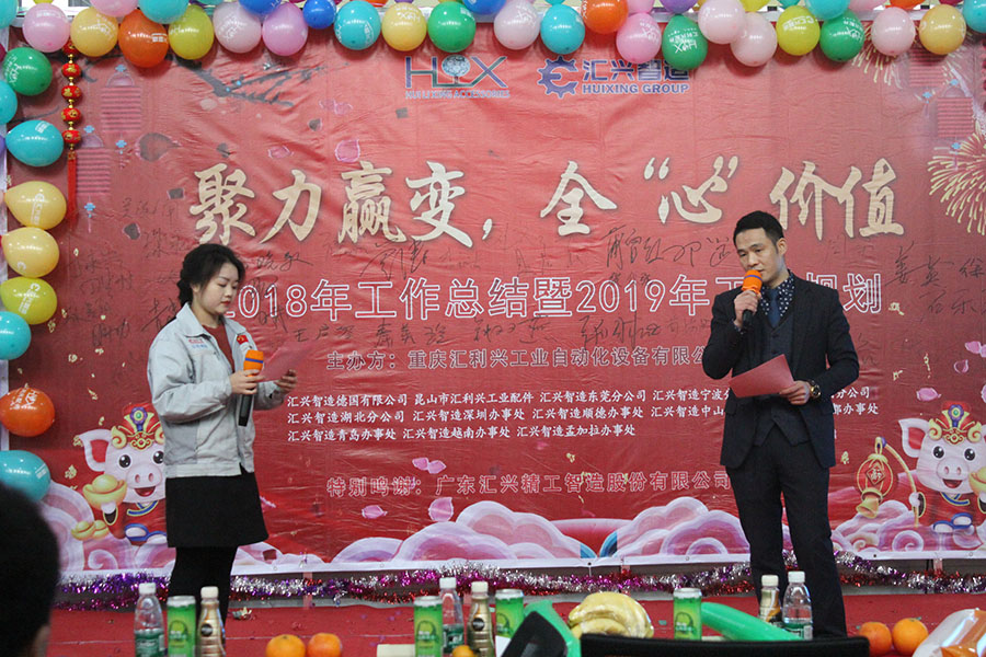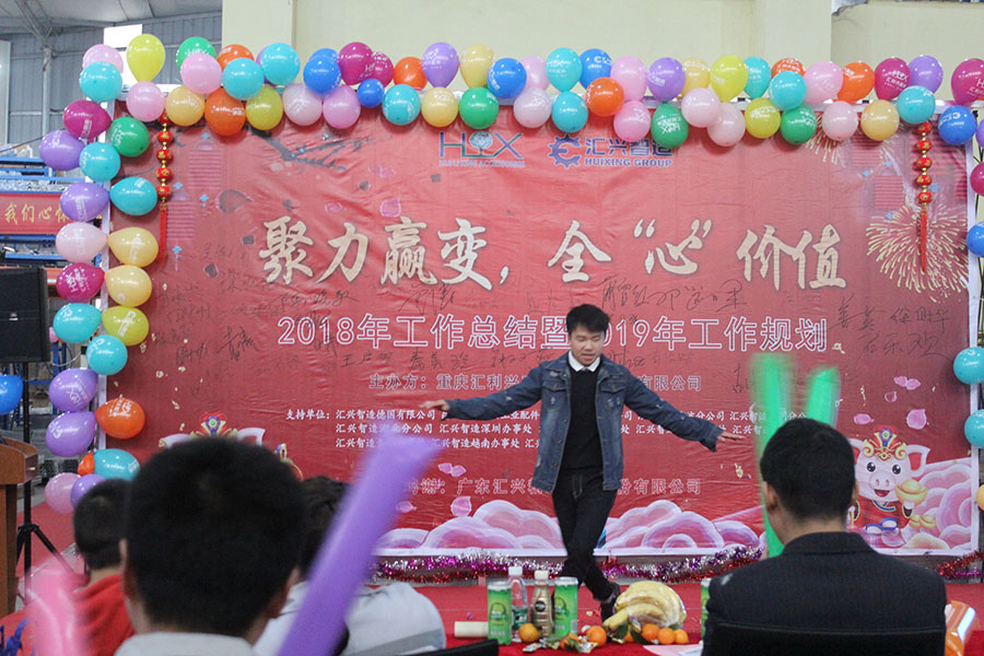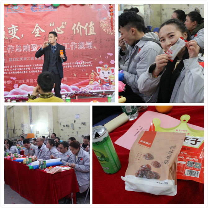 踏歌起舞辭舊歲,歡聲笑語迎新年。2019年1月19日下午,匯利興(重慶)公司在廠內(nèi)舉行了一場以“聚力贏變,全心價值”為主題的年終總結(jié)大會。會議主持人:石樂歡、熊學(xué)斌,參會人員:全體匯興家人。 56個民族56朵花,56個民族是一家,家人們以苗族竹竿舞進場,濃厚的民族氣息里不泛透露出匯興人愛國也愛匯興家。