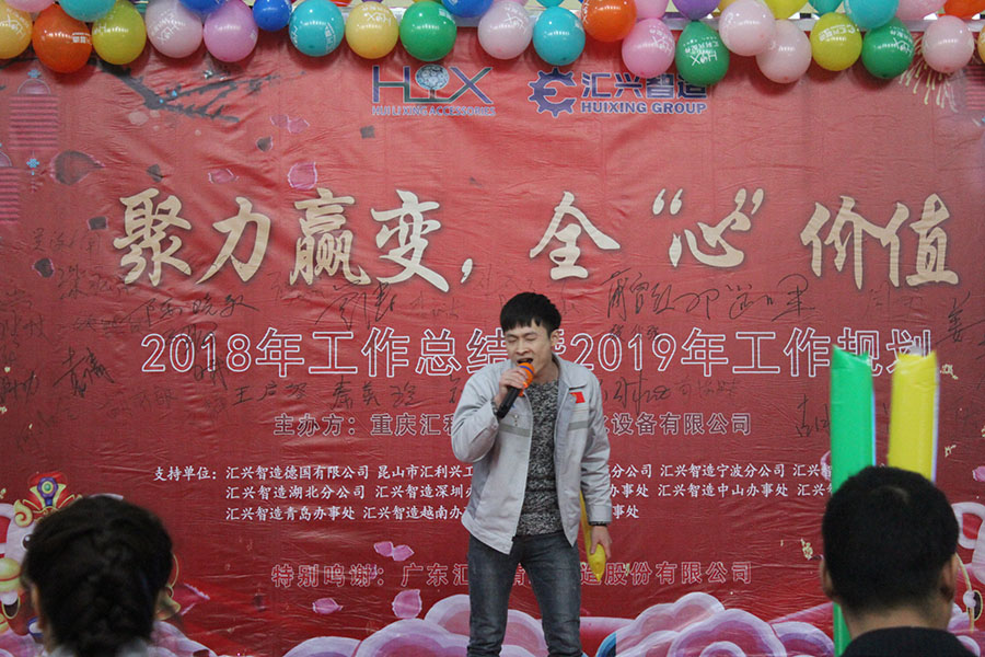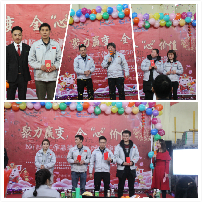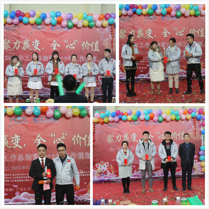 特等獎、一等獎、二等獎、三等獎 人生百味,五味最常在-品嘗人生五味象牙塔(酸、甜、苦、辣、咸),胡總攜全體家人們一起品嘗五味,一起嘗遍酸、甜、苦、辣、咸,回味2018年點點滴滴幸福的甜及幸福的苦,一起同甘苦共患難,也正是有了這五味,讓匯興生活多姿多彩。 緊接著進入頒獎環(huán)節(jié),對2018年中所取得成績及進步的家人分別頒發(fā)了最佳付出獎、最佳團隊獎、最佳進步獎、鼓勵獎,以資鼓勵。隨后胡總宣讀人事任命(任命熊學(xué)斌為銷售副總、周榮任命為物控主管、蒲曾紅任命為外省市場部負責(zé)人)。  最佳進步、最佳團隊、最佳付出、鼓勵獎 隨著時間的推移,年會逐步接近尾聲,全體匯興家人合唱匯利興之歌《相信我們會創(chuàng)造奇跡》,會議就隨著家人們的歌聲而告一段落,但匯興人追夢的腳步卻一直在前進。夢想是豐滿的,未來更值得期待,2019年匯興人將用行動詮釋“聚力贏變,全心價值”,加油!