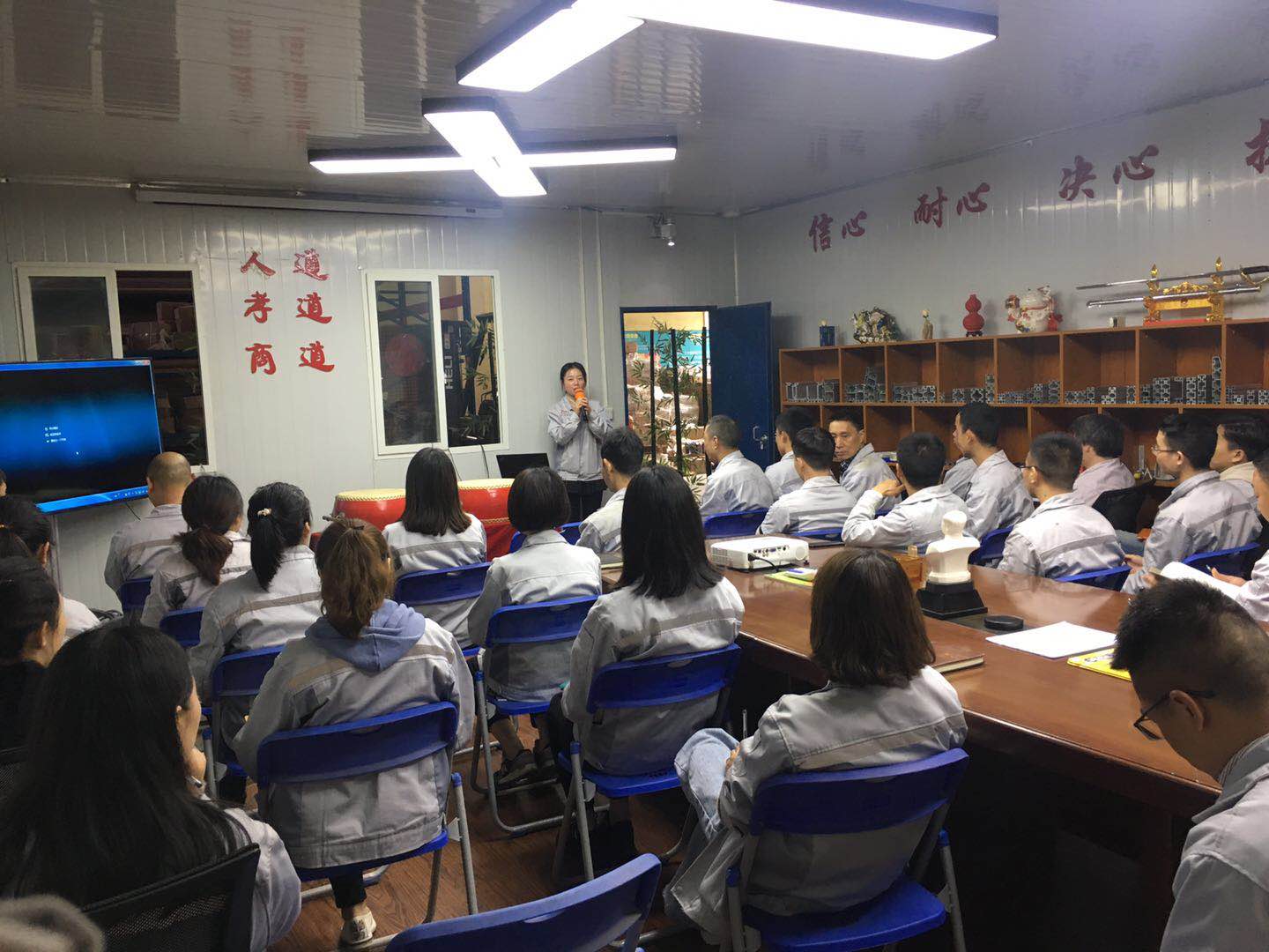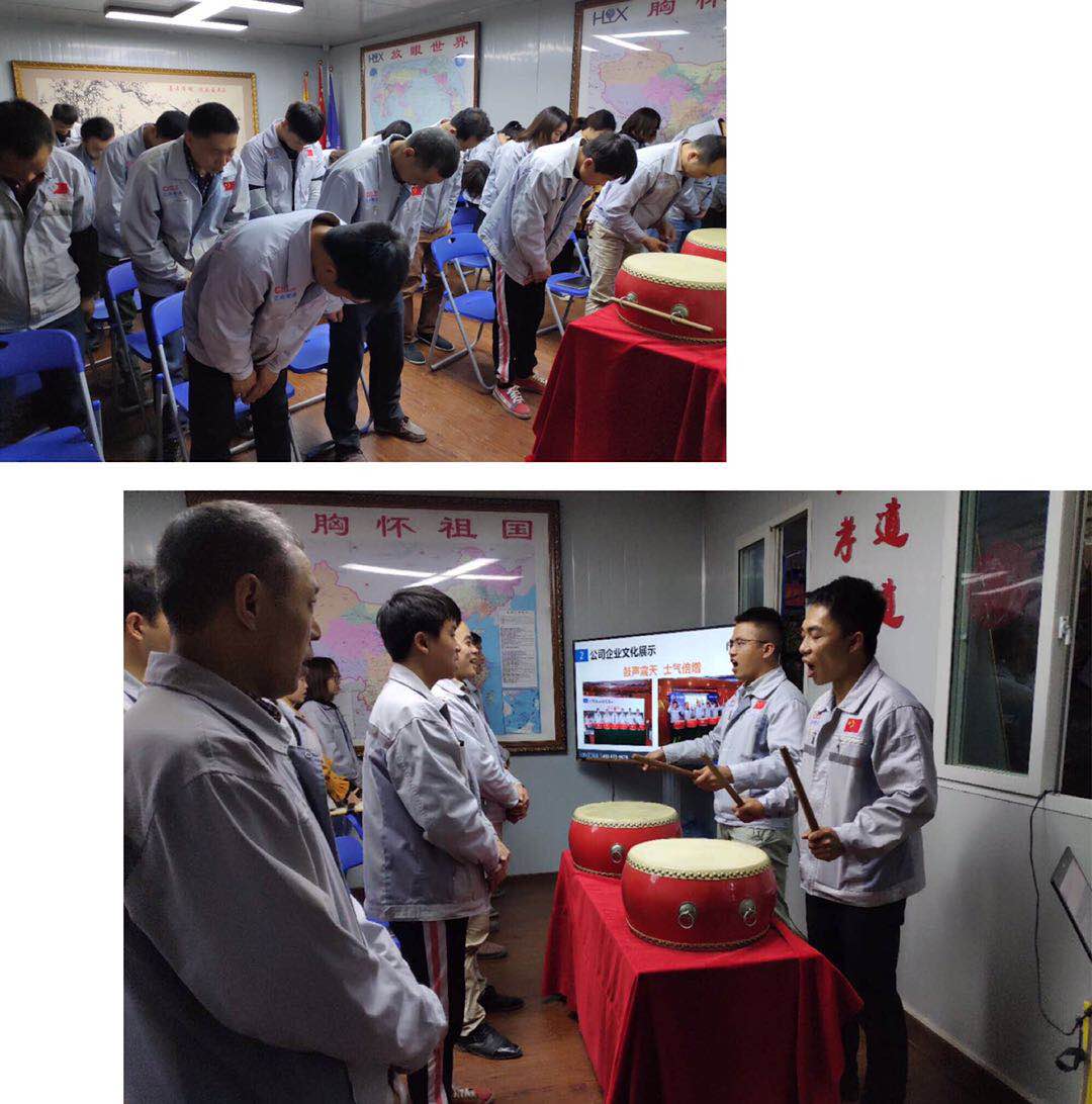 會(huì)議第二項(xiàng)議程,企業(yè)文化的展示。全體匯興人整肅衣冠對匯興人倍加推崇的“三道文化”(孝道、商道、人道)鄭重地鞠躬,莊嚴(yán)宣誓企業(yè)愿景:“成為全球領(lǐng)先的智能自動(dòng)化產(chǎn)業(yè)鏈集成服務(wù)商”,企業(yè)使命:做受尊敬的好人,造受尊敬的產(chǎn)品,辦受尊敬的企業(yè),建受尊敬的平臺,企業(yè)精神“用情做人、用心做事”,團(tuán)隊(duì)精神“忠誠團(tuán)結(jié)、勤奮進(jìn)取”,工匠精神:創(chuàng)于手、精于工、智于器、匠于心、品于行,行為準(zhǔn)則:口中有德、目中有人、手中有技、心中有愛、行中有善,職業(yè)準(zhǔn)則:對工作熱臉、對同事笑臉、對錯(cuò)誤紅臉、對浪費(fèi)黑臉、對榮譽(yù)爭臉。隨后二位核心精英擊士氣鼓,士氣比武器更重要,現(xiàn)場氣氛熱烈、振奮人心。