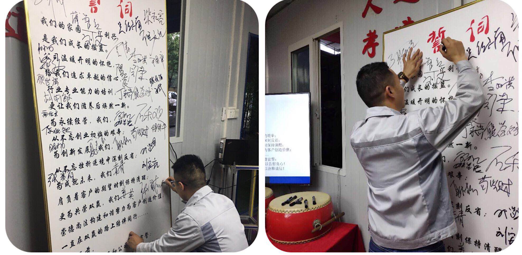 最后,全體匯興人起立宣讀企業(yè)誓言,“我們以個(gè)人尊嚴(yán)和公司聲譽(yù)宣誓,面對自己必踏踏實(shí)實(shí)做好每件事情,以告慰良心!面對客戶定兢兢業(yè)業(yè)做好每一次服務(wù),以詮釋誠信”,然后肩并肩,一起唱響匯興之歌-相信我們會(huì)創(chuàng)造奇跡,整個(gè)大會(huì)就伴隨著大家激昂的誓詞聲及歌聲而落下帷幕。