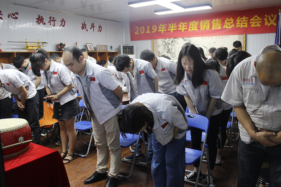 大會共計五項議程。會議第一項議程,企業(yè)文化展示。全體匯興人整肅衣冠對匯興人倍加推崇的“三道文化”(孝道、商道、人道)鄭重地鞠躬,莊嚴(yán)宣誓企業(yè)愿景:“成為全球領(lǐng)先的智能自動化產(chǎn)業(yè)鏈集成服務(wù)商”,企業(yè)精神“用情做人、用心做事”及企業(yè)使命。隨后二位核心高管擊士氣鼓,士氣比武器更重要,鼓聲震天,士氣倍增。