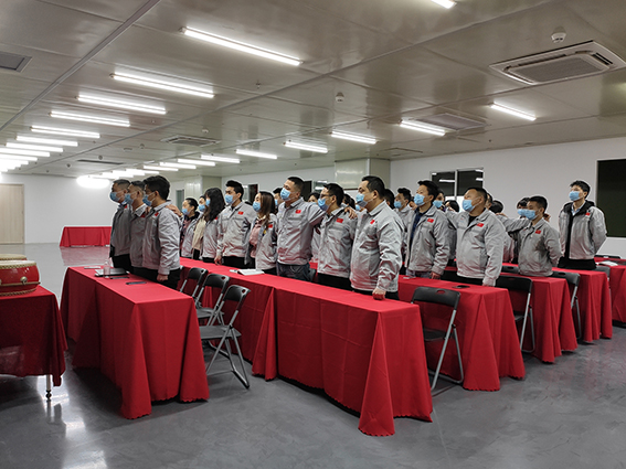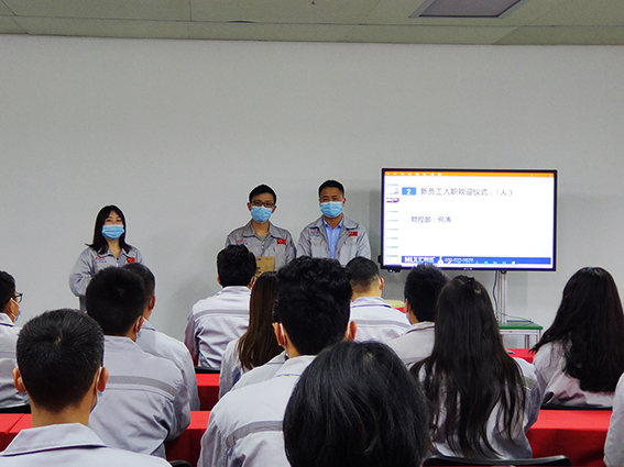 會議第一項議程,企業(yè)文化的展示。全體匯興人整肅衣冠對匯興人倍加推崇的“三道文化”(孝道、商道、人道)鄭重地鞠躬,莊嚴(yán)宣誓企業(yè)愿景:“成為全球領(lǐng)先的智能自動化產(chǎn)業(yè)鏈集成服務(wù)商”,企業(yè)使命:做受尊敬的好人,造受尊敬的產(chǎn)品,辦受尊敬的企業(yè),建受尊敬的平臺,企業(yè)精神“用情做人、用心做事”,團隊精神“忠誠團結(jié)、勤奮進取”,工匠精神:創(chuàng)于手、精于工、智于器、匠于心、品于行等。隨后由胡總經(jīng)理和張副總擊士氣鼓,士氣比武器更重要,現(xiàn)場氣氛熱烈、振奮人心。 會議第二項議程,新員工入職歡迎儀式。由常務(wù)副總徐總親自為新入職員工頒發(fā)紀(jì)念品。為公司注入新鮮血液,為團隊帶來新的生機和活力。