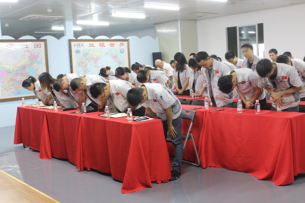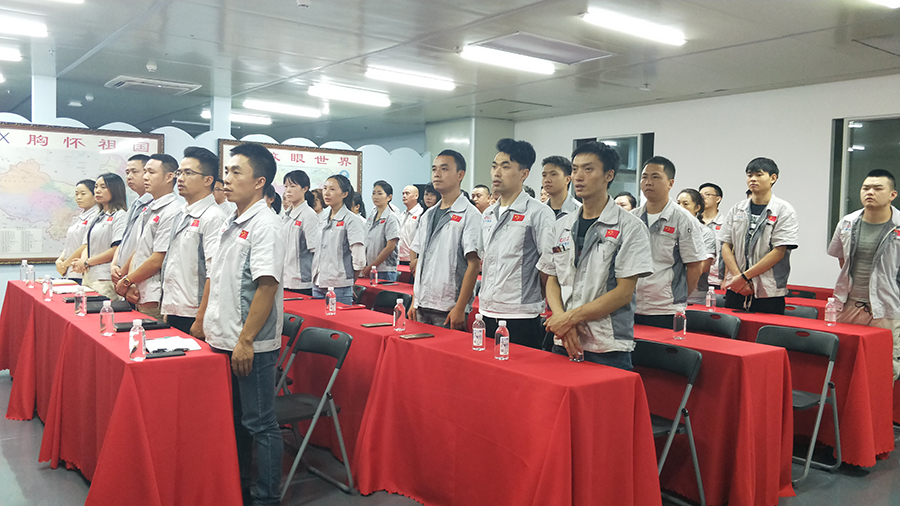 有大家才能有小家,升國旗唱國歌。全體員工精神抖擻,一起唱響國歌-五星紅旗迎風(fēng)飄揚.....從今走向繁榮富強,現(xiàn)場聲音嘹亮、士氣如虹,著實展現(xiàn)了祖國兒女、新時代接班人的精神面貌。 會議開始,全體員工整肅衣冠,對倍加推崇的孝道、商道、人道鄭重鞠躬,莊嚴(yán)宣誓企業(yè)愿景:“成為全球領(lǐng)先的智能自動化產(chǎn)業(yè)鏈集成服務(wù)商”,企業(yè)使命:做受尊敬的好人,造受尊敬的產(chǎn)品,辦受尊敬的企業(yè),建受尊敬的平臺,企業(yè)精神“用情做人、用心做事”,團隊精神“忠誠團結(jié)、勤奮進(jìn)取”,工匠精神:創(chuàng)于手、精于工、智于器、匠于心、品于行等。
