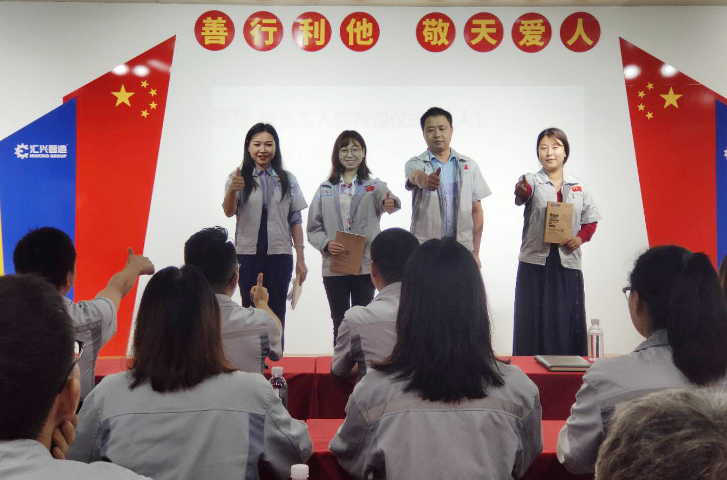 2020年9月22日8點(diǎn),匯利興西南工廠全體員工在匯利興學(xué)校召開8月月度會議,由事務(wù)中心主管陳香草主持。 會議前由二位核心高管擊士氣鼓,鼓舞匯利興奮勇前進(jìn),現(xiàn)場鼓聲震天,士氣如虹。 會議第一項議程,企業(yè)文化的展示。全體匯興人整肅衣冠對匯興人倍加推崇的“三道文化”(孝道、商道、人道)鄭重地鞠躬,莊嚴(yán)宣誓企業(yè)愿景:“成為行業(yè)優(yōu)秀的智能自動化產(chǎn)業(yè)鏈集成服務(wù)商”,企業(yè)使命:做受尊敬的好人,造受尊敬的產(chǎn)品,辦受尊敬的企業(yè),建受尊敬的平臺,企業(yè)精神“用情做人、用心做事”,團(tuán)隊精神“忠誠團(tuán)結(jié)、勤奮進(jìn)取”,工匠精神:創(chuàng)于手、精于工、智于器、匠于心、品于行,行為準(zhǔn)則:口中有德、目中有人、手中有技、心中有愛、行中有善,職業(yè)準(zhǔn)則:對工作熱臉、對同事笑臉、對錯誤紅臉、對浪費(fèi)黑臉、對榮譽(yù)爭臉。 會議第二項,新員工入職歡迎儀式。企業(yè)的發(fā)展注定離不開新鮮血液的注入,新的活力的輸入,由徐總親自為新入員工頒發(fā)紀(jì)念品及新員工代表講話。