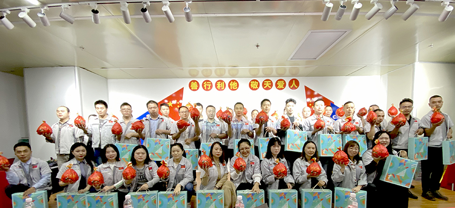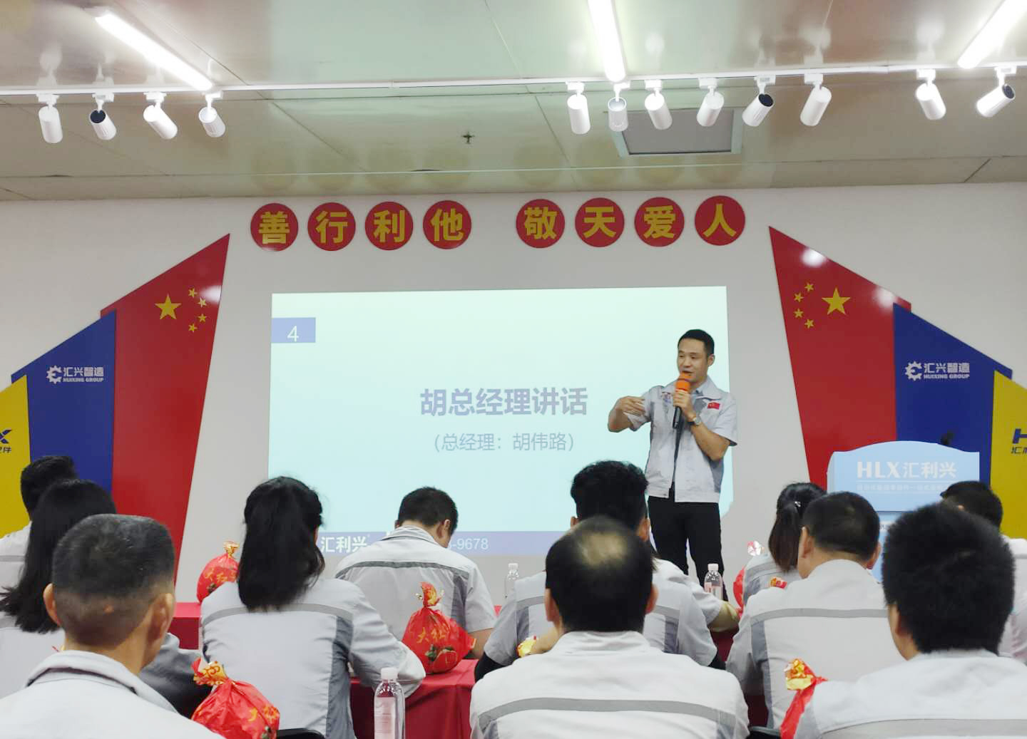 會議第四項,迎中秋慶國慶。公司自成立以來,一直秉持以人為本,關(guān)愛員工的理念,不斷完善員工福利制度,每逢大大小小的節(jié)日都不忘為員工送上一份祝福,讓員工具有自豪感、幸福感和歸屬感,讓員工在繁忙的工作中也能感受到家的溫暖,同時也促進(jìn)了團(tuán)隊的凝聚力及向心力,提升員工工作動力,為匯興遠(yuǎn)大前景及發(fā)展貢獻(xiàn)一份力量! 會議第五項,胡總經(jīng)理作工作總結(jié)。首先胡總通過企業(yè)文化之一“善行他人,敬天愛人”這八個字進(jìn)行相應(yīng)闡述,積善行,利于他,以行動為結(jié)果導(dǎo)向,要常懷敬畏之心、感恩之心,利他人之心,要懷有強(qiáng)烈的愿望,付出不亞于任何人的努力;其二,追求銷售最大化,實現(xiàn)經(jīng)費(fèi)最小化;其三,勉勵在場員工,在面對困境時,要拿出勇氣,要燃起斗志;要胸懷坦誠之心,要不斷挑戰(zhàn)創(chuàng)造性的工作,要對自己有所期望。最后談到:人生最幸福的事情,就是有人信你,有人幫你,有人愛你,有人懂你,并期望全體員工為了公司的美好明天,一定要努力努力再努力! 會議尾聲,齊唱匯興之歌(相信我們會創(chuàng)造奇跡),全體員工起立肩并肩,一起唱響“只要我們一起努力,相信我們一定會創(chuàng)造奇跡”,歌聲嘹亮,振奮人心!