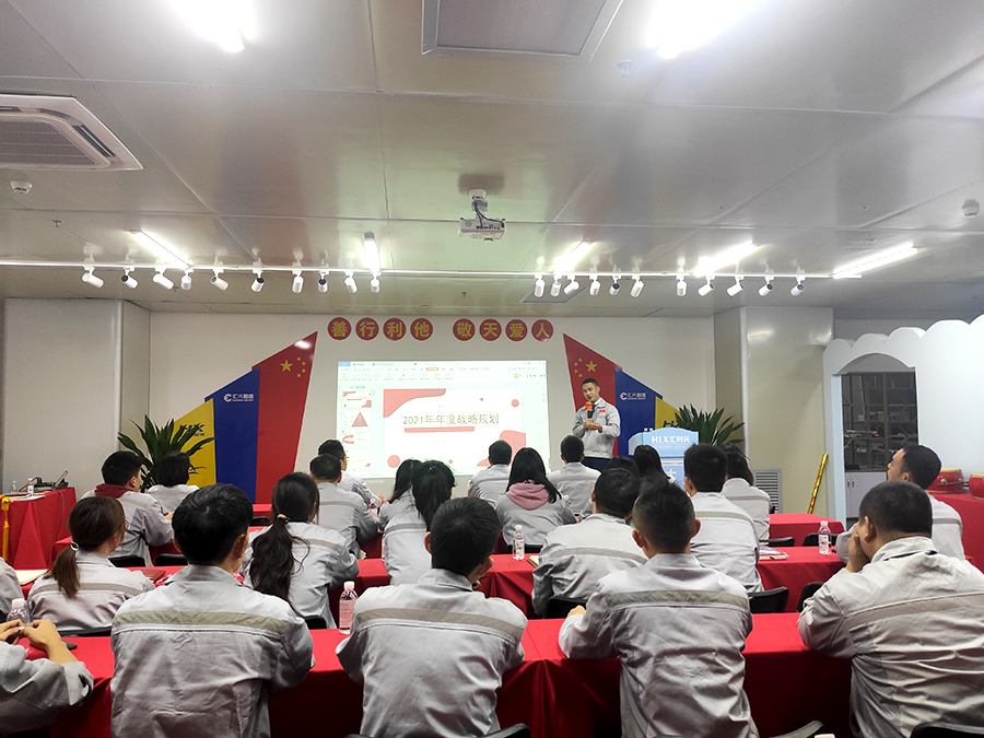 會(huì)議第五項(xiàng)議程,積分制度詮釋。積分制度開展將近一個(gè)月,在總經(jīng)辦的全力領(lǐng)導(dǎo)下,各部門持續(xù)且有效開展部門工作,充分調(diào)動(dòng)了各部門工作的積極性,提高公司在同行業(yè)競(jìng)爭(zhēng)力,增強(qiáng)公司團(tuán)隊(duì)內(nèi)部戰(zhàn)斗力,加強(qiáng)公司在行業(yè)內(nèi)的創(chuàng)新力,為公司五年戰(zhàn)略規(guī)劃提供原動(dòng)力。有效踐行了全體員工自上而下形成“我來干、搶著干、努力干”的工作作風(fēng),并進(jìn)一步向新入員工宣導(dǎo)積分管理制度一系列準(zhǔn)則。 會(huì)議第6項(xiàng)議程,胡總經(jīng)理講話。首先胡總經(jīng)理從八大要素來解析2021年年度戰(zhàn)略規(guī)劃(戰(zhàn)略基礎(chǔ)、年度業(yè)績目標(biāo)、人力資源保障、運(yùn)營、生產(chǎn)資源保障、綜合管理保障、財(cái)務(wù)資源保障、組織管理保障、人員配置系統(tǒng))等,進(jìn)一步提高公司在同行業(yè)競(jìng)爭(zhēng)力,增強(qiáng)公司團(tuán)隊(duì)內(nèi)部戰(zhàn)斗力,加強(qiáng)公司在行業(yè)內(nèi)的創(chuàng)新力,為公司五年戰(zhàn)略規(guī)劃提供原動(dòng)力;第二、胡總經(jīng)理談到:在2021年大市場(chǎng)環(huán)境下,各部門主管要認(rèn)真審視公司內(nèi)部優(yōu)勢(shì)和劣勢(shì)、強(qiáng)項(xiàng)和弱項(xiàng)的基礎(chǔ)上,對(duì)當(dāng)前行業(yè)的競(jìng)爭(zhēng)形勢(shì)和趨勢(shì)作出基本研判; 第三、貫徹公司對(duì)三個(gè)五年發(fā)展的要求和期望,結(jié)合公司運(yùn)營情況,要學(xué)會(huì)分析外部環(huán)境的劣勢(shì)和威脅、內(nèi)部的優(yōu)勢(shì)和發(fā)展機(jī)會(huì),確定公司發(fā)展方向,確保各項(xiàng)計(jì)劃順利落地; 第四、各部門管理執(zhí)行的各項(xiàng)工作、管理活動(dòng),包括任務(wù)制定、制度設(shè)立、日常管理,都必須始終不逾地圍繞戰(zhàn)略方針開展、貫徹和執(zhí)行; 第五、必須以“理順脈絡(luò)、根治病灶、提升效率”為目標(biāo),嚴(yán)格開展各項(xiàng)工作; 第六、匯利興耕耘行業(yè)20載,深耕西南10年,致力打造成為自動(dòng)化輸送設(shè)備配件行業(yè)的一站式采購工廠,專業(yè)為行業(yè)客戶提供標(biāo)準(zhǔn)化、定制化、個(gè)性化、模塊化的專用高端精密零部件,愿全體員工拿出眾人拾柴的心勁兒、勇毅篤行的穩(wěn)勁兒一同去開辟公司的未來!助力公司前進(jìn)!