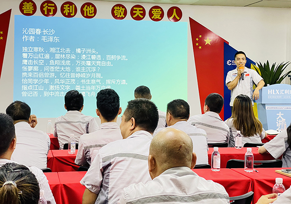 寶劍鋒從磨礪出 梅花香自苦寒來。為回顧總結(jié)上半年工作,進一步明確下半年工作思路,確保全年目標任務(wù)順利完成。2021年7月29日18點30分,匯利興西南工廠全體職員在匯利興學(xué)校召開2021年上半年工作總結(jié)會議。 會議伊始,兩位高管敲響士氣鼓,敲響我們下半年沖鋒的號角,現(xiàn)場士氣如虹。隨后宣讀企業(yè)文化。