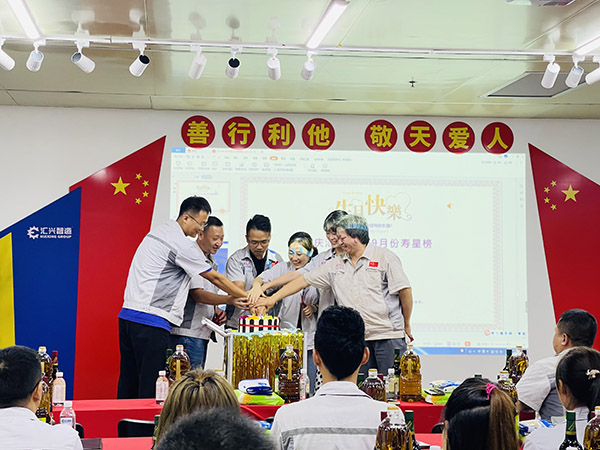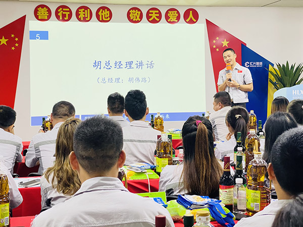 與時光握手,與歲月言和。成長不期而遇,用真切的祝福拉開壽星們的生日會,不僅讓壽星們的生日過得更有意義,也使每一位員工都能切身的感受到公司的溫暖和領(lǐng)導(dǎo)的用心,也讓每個人所經(jīng)歷的平凡歲月里,都可以連續(xù)發(fā)生不一樣的驚喜。再次祝福壽星們生日快樂! 會議第五項,胡偉路總經(jīng)理講話。首先胡總經(jīng)理感嘆時光飛逝,歲月如梭,驀然回首,已到初秋之際,2021年僅剩下僅有的100多天,在這攻堅的三月里,全體員工仍需拿出“紅軍不怕遠征難 萬水千山只等閑”的民族氣概,朝著我們的目標(biāo)拿出我們的士氣卯足勁兒的向前沖;其二、胡總經(jīng)理向全體員工展示公司中秋禮品并解析禮品寓意(柴、米、油、鹽、醬、醋、茶),以生活中不可缺之的物品讓全體員工深刻感受到公司的關(guān)懷和關(guān)愛,并從側(cè)面宣導(dǎo)全體員工在工作崗位中,對待同事要有溫度,對待工作要有態(tài)度;花若盛開,蝴蝶自來,你若精彩,上天自會安排;其三、通過一則短視頻向全體員工宣導(dǎo)反哺之恩 、舐犢之情,進一步勉勵全體員工要有一顆感恩的心,感恩身邊的人;其四、創(chuàng)立夢想基金,鼓勵員工加大產(chǎn)值賦能,為公司為個人謀福利;同時也進一步勉勵全體員工,“寶劍鋒從磨礪出,梅花香自苦寒來”,只要我們一起努力,相信我們一定會實現(xiàn)我們的目標(biāo),讓我們一起擼起袖子加油干!