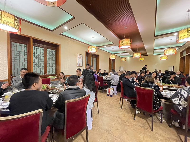 全體員工起立肩并肩,一起唱響“只要我們一起努力,相信我們一定會(huì)創(chuàng)造奇跡”,字里行間都激勵(lì)著在場每一位員工一定要奮勇前進(jìn),歌聲嘹亮,振奮人心! 伴隨時(shí)間的推移,也逐漸拉開了會(huì)議的下半場,冬天里的第一只羊。公司用最貼心的方式向每一位員工表達(dá)著自己的愛,讓大家在寒冷的冬天,不再畏懼寒冷,將暖暖的祝福,送到了大家的眼前,融化在火熱的烤羊里。香味四溢的正宗的草原風(fēng)味烤全羊,經(jīng)過專業(yè)師傅的精心烤制,油汁慢慢的從金黃的羊肉中沁出,羊肉也因?yàn)榛鸬闹丝径兊慕瘘S,香氣四溢,讓大家一同體驗(yàn)了大口吃肉大口喝酒的豪放之情,讓大家感受到舌尖上的美食、味蕾的跳動(dòng),并訴說著從舌尖到心尖的蛻變,從走胃到走心的真情交流;大家圍坐在一起大快朵頤,席間談笑風(fēng)生,盡展妙趣,共同舉杯歡慶這美好時(shí)刻! 有一種浪漫叫并肩作戰(zhàn),有一種力量叫全力以赴,有一種果敢叫奮不顧身。無論前方等待著什么,我們?nèi)耘f拼搏向上,拿出我們最佳的狀態(tài),永遠(yuǎn)堅(jiān)定地向目標(biāo)邁進(jìn),相信所有堅(jiān)韌不拔的努力,都會(huì)得到勝利的回饋!加油!