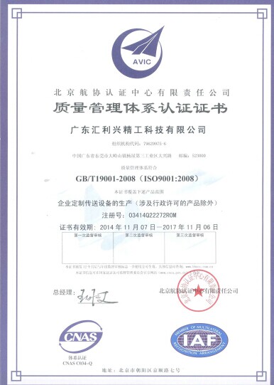 4、匯利興集團公司于2014年11月通過ISO9001:2008質(zhì)量管理體系認證;